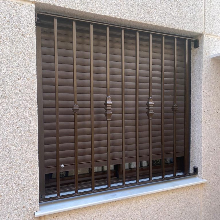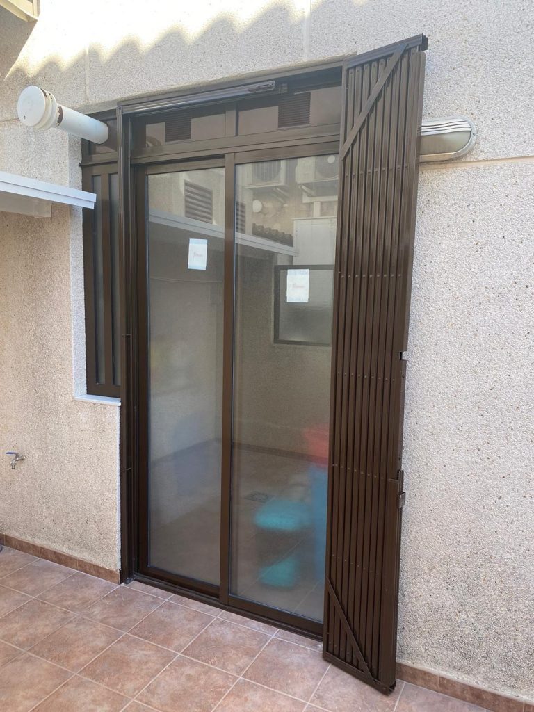 - Cerramiento de galería con reja extensible incorporada y reja de forja en ventana