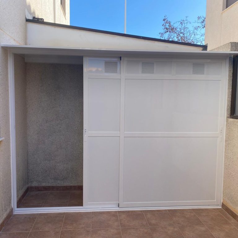 Armario exterior hecho a medida de hoja corredera con rejilla de ventilación superior..