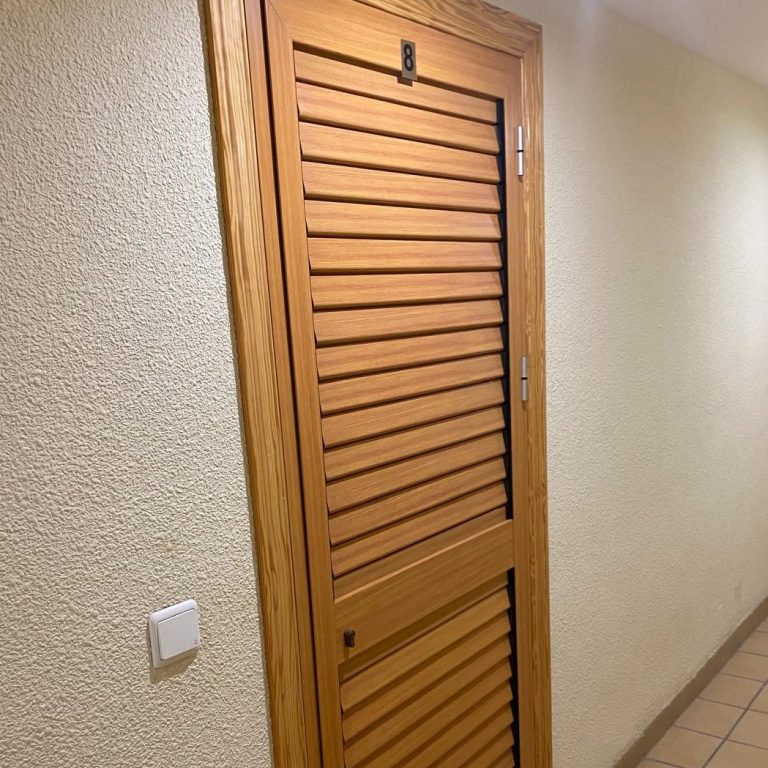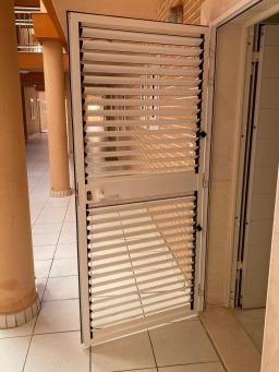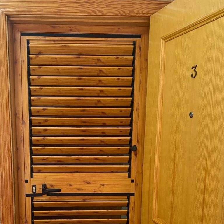 Una puerta mallorquina se caracteriza por estar compuesta por lamas horizontales, que pueden ser fijas o orientables. Estas lamas permiten regular la entrada de luz o ventilación al mismo tiempo que ofrecen intimidad y aislamiento térmico.