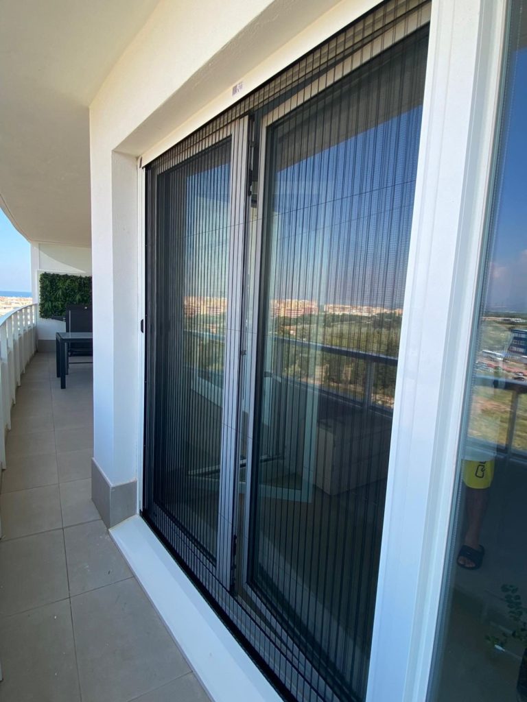 Las mosquiteras correderas son un sistema de protección contra insectos que se instala en ventanas o puertas correderas. Se deslizan sobre un carril de la ventana como si fueran una tercera hoja y se pueden mover lateralmente para permitir la apertura y el cierre sin necesidad de quitarla.